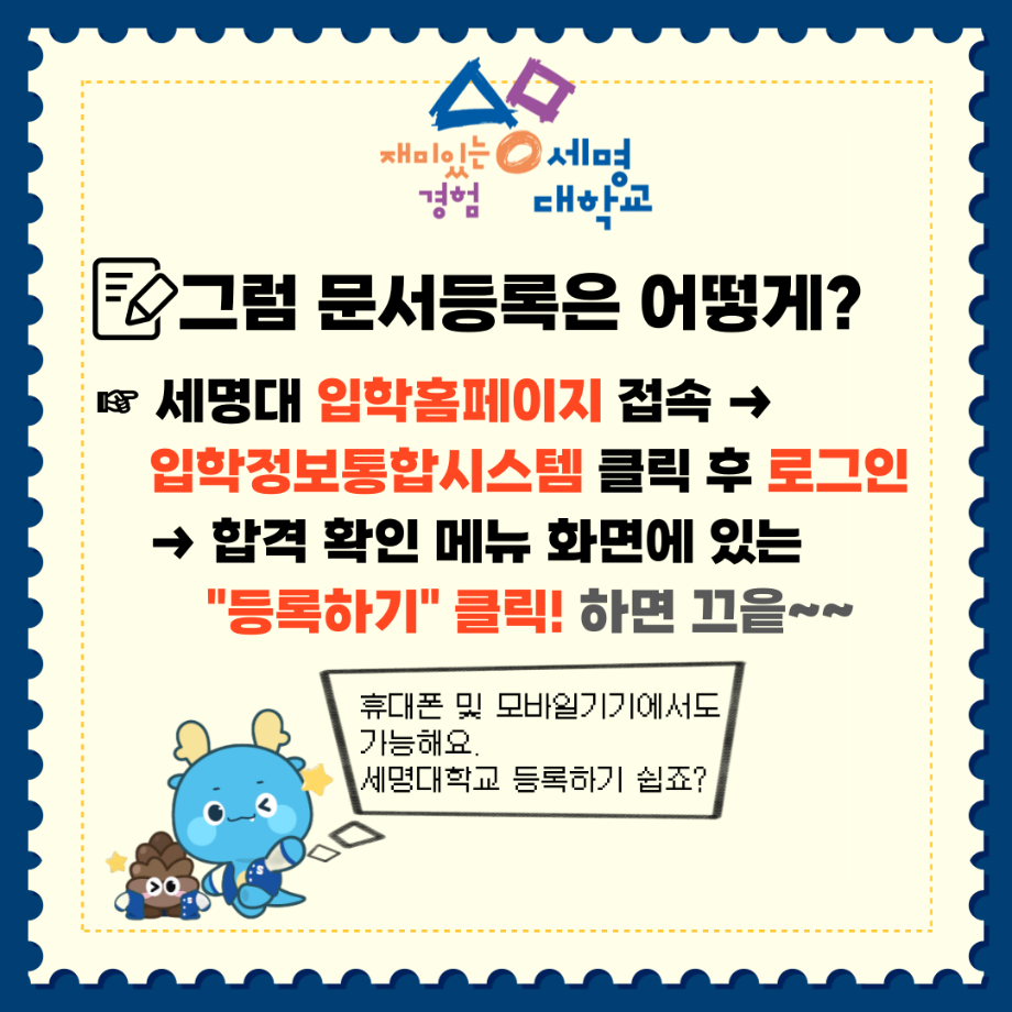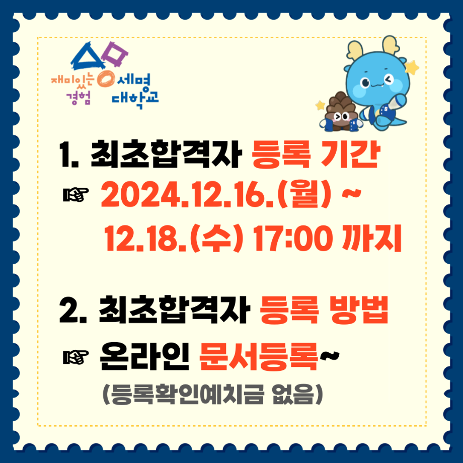 본문 시작 홈으로 커뮤니티 학과소개 교수소개 학과과정 커뮤니티 홈페이지가이드 학과활동 및 행사 학과공지 채용정보 학과활동 및 행사 전공자료실 동아리 학과활동 및 행사 페이스북 트위터 프린트 2025학년도 수시모집 최초합격자 발표 안내 환경에너지학과 1855 2024-12-17 수시모집 최초 합격자 발표 안내 입니다..[자세한 내용 클릭] http://http://ipsi.semyung.ac.kr 목록 이전2024년 청소년 빅콘서트 전공체험 프로그램 운영 다음 2025학년도 수시모집 충원합격자 발표/등록 안내 담당부서 : 환경에너지학과 담당자 : - 연락처 : 043-649-1337 최종수정일 : 2024-10-26 만족도조사 만족도 조사 이 페이지에서 제공하는 정보에 대하여 만족하시나요? 매우만족 만족 보통 불만족 매우불만족