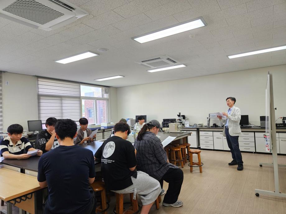 본문 시작 홈으로 커뮤니티 학과소개 교수소개 학과과정 커뮤니티 홈페이지가이드 학과활동 및 행사 학과공지 채용정보 학과활동 및 행사 전공자료실 동아리 학과활동 및 행사 페이스북 트위터 프린트 생물반응공학및실습과목 실습 수업 진행 환경에너지학과 1079 2025-09-10 환경에너지학과 3학년 생물반응공학및실습과목 수업이 진행되었습니다. 실험실에서 집중하고 있는 학생들의 수업입니다. 목록 이전바이오환경실무체험 학술특강 1차 실시 다음 바이오환경실무체험 학술특강 2차 실시 담당부서 : 환경에너지학과 담당자 : - 연락처 : 043-649-1337 최종수정일 : 2024-10-26 만족도조사 만족도 조사 이 페이지에서 제공하는 정보에 대하여 만족하시나요? 매우만족 만족 보통 불만족 매우불만족