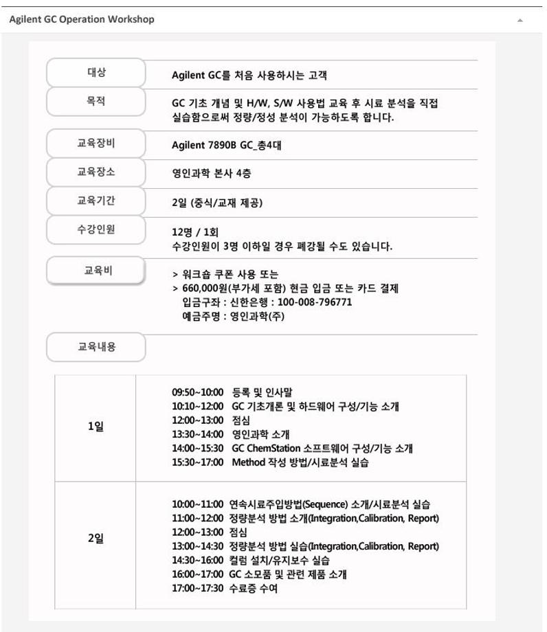 본문 시작 홈으로 커뮤니티 학과소개 교수소개 학과과정 커뮤니티 홈페이지가이드 학과활동 및 행사 학과공지 채용정보 학과활동 및 행사 전공자료실 동아리 학과활동 및 행사 페이스북 트위터 프린트 2018하계 위탁교육 바이오환경공학과 9516 2018-08-28 바이오환경공학과에서는 매년 학생들의 신청을 받아 영인과학주식회사로 고가장비위탁교육을 보내고 있습니다. 2018년 8월 6일 ~ 8월 7일 2일간 1차로 Agilent GC Operation Workshop를 실시하였습니다. 목록 이전2018 수질특강 다음 2019학년도 신입생환영회 담당부서 : 환경에너지학과 담당자 : - 연락처 : 043-649-1337 최종수정일 : 2024-10-26 만족도조사 만족도 조사 이 페이지에서 제공하는 정보에 대하여 만족하시나요? 매우만족 만족 보통 불만족 매우불만족