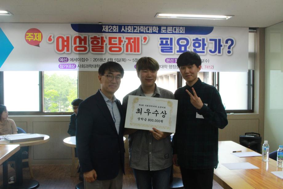 본문 시작 홈으로 커뮤니티 대학소개 학과소개 입학안내 커뮤니티 홈페이지가이드 포토갤러리 대학소식 자료실 포토갤러리 포토갤러리 페이스북 트위터 프린트 제2회 사회과학대학 토론대회 시상식 사회과학대학 6096 2018-05-30 열띤 토론 끝에 호텔관광경영학과의 ‘최종병기’ 팀이 최우수상을 수상했습니다. 최우수상 수상팀에게 직접 상장 수여를 하시기 위해 대회장을 찾아주신 이용걸 총장님께 감사드립니다. 이것으로 제2회 사회과학대학 토론대회가 성황리에 마쳤습니다. 대회 지원을 위해 도와주신 교직원 여러분과 토론대회에 참여해주신 많은 학생들께 진심으로 감사드립니다. 목록 이전제2회 사회과학대학 토론대회 현장스케치2 다음 2018학년도 사회과학대학 취업특화프로그램 설명회 담당부서 : 사회과학대학 담당자 : - 연락처 : 043-649-7412 최종수정일 : 2024-10-26 만족도조사 만족도 조사 이 페이지에서 제공하는 정보에 대하여 만족하시나요? 매우만족 만족 보통 불만족 매우불만족