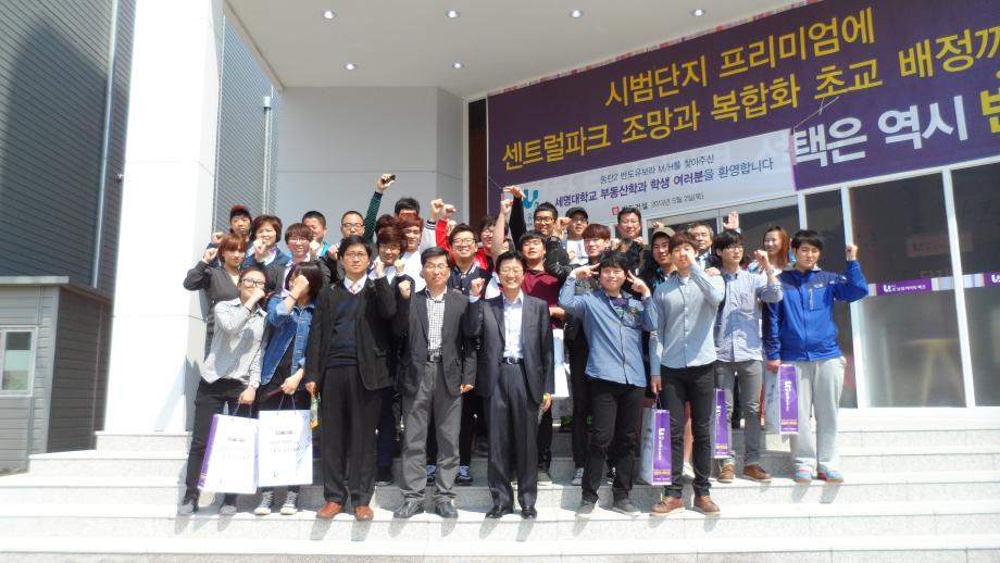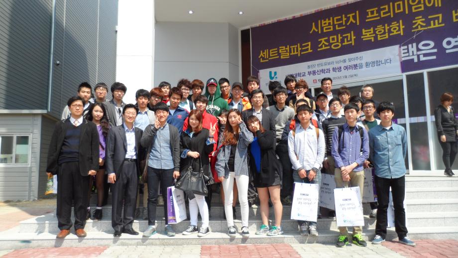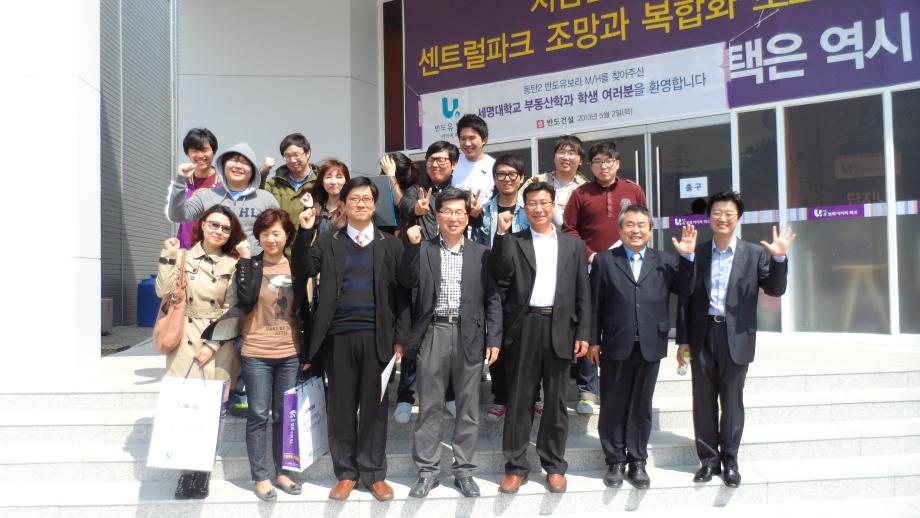 세명대학교 부동산학과(학과장 : 김행종 교수)는 2013년 5월 2일(목) 재학생 120여명과 권기욱, 김상진, 백민석, 금상수 교수 등이 반도건설 유보라 모델하우스(동탄2시도시 아파트분양현장)를 방문하였다.
