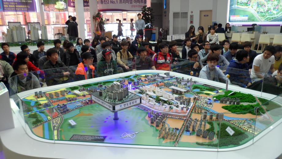 이날 견학에서는 반도건설 김정호 홍보팀장님과 도우InD(주) 성정욱 팀장님 등의 안내로 "반도건설 현황과 동탄신도시 분양주택 현황 등에 관한 브리핑 및 부동산개발실태의 이해와 경험, 동영상 관람과 유보라 모델하우스 관람 등 다양한 부동산활동을 체험하였다.