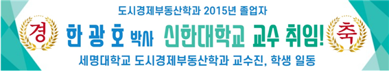 세명대학교 부동산학과는 2022년 도시경제부동산학과로 명칭변경하여 한광호교수와같은 우수한 부동산전문가를 양성하고 대학원과정으로 부동산전문분야 석박사 배출을 통하여 연구발전과 사회에 공헌하는 인재를 양성하는 것을 목표로 하고 있습니다.