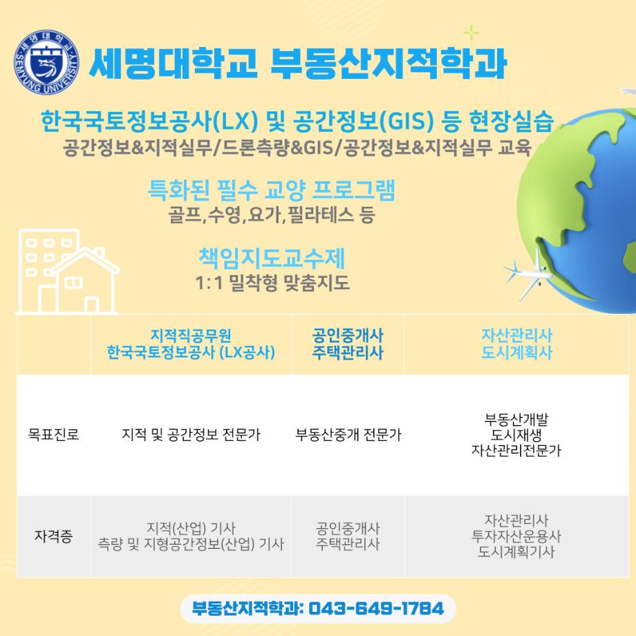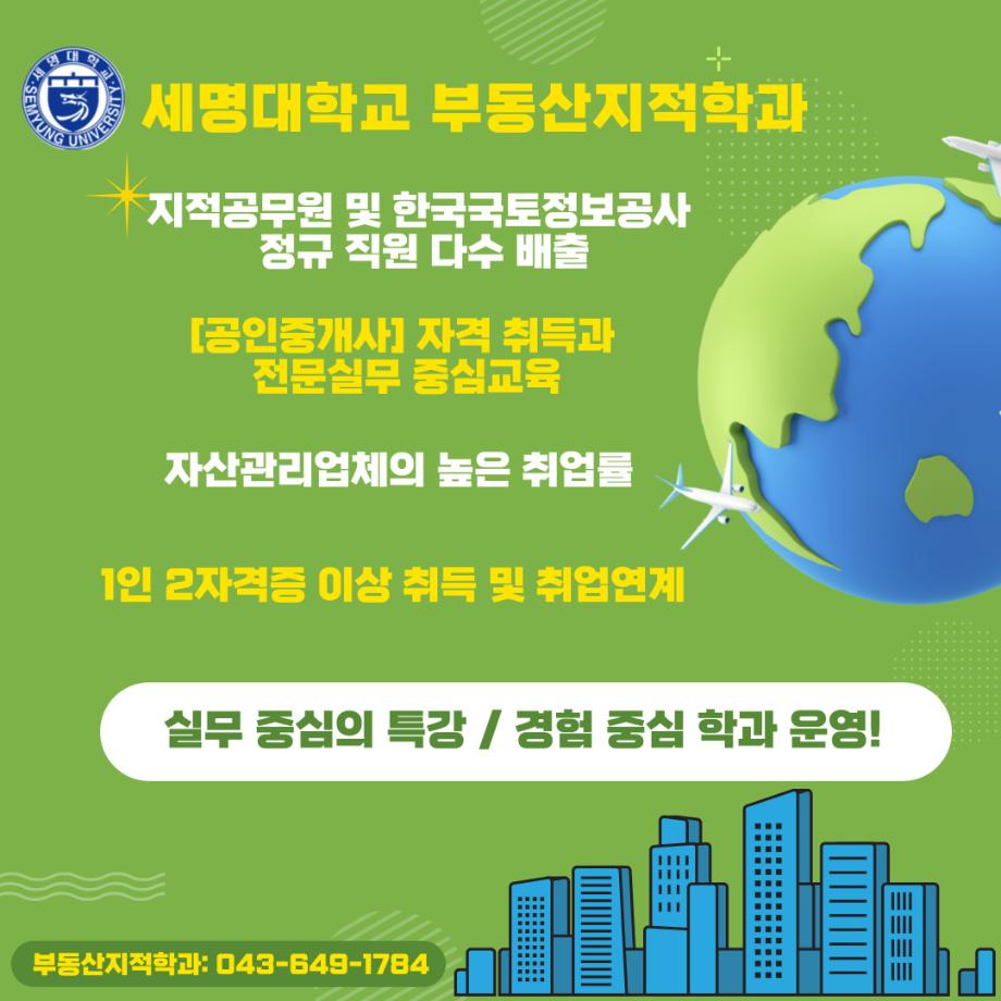 안녕하세요. 세명대학교 부동산지적학과입니다.