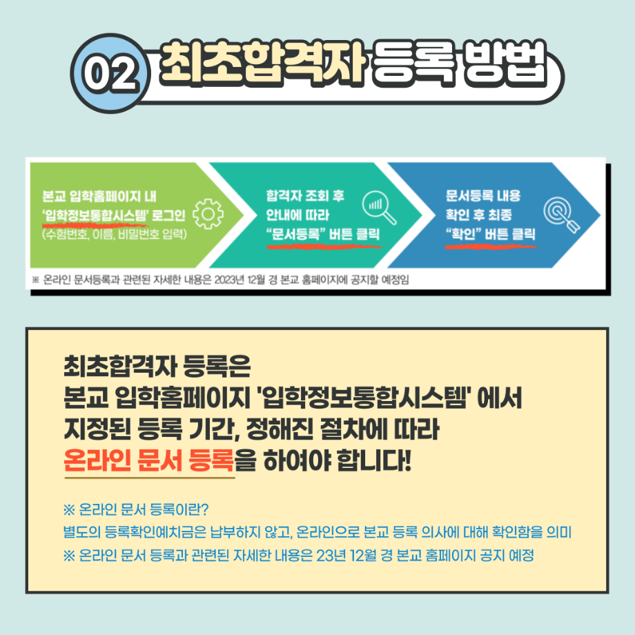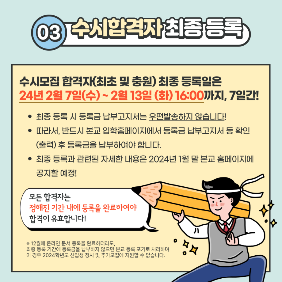 최종등록과 관련된 자세한 내용은 2024년 1월 말 본교 홈페이지에 공지됩니다.