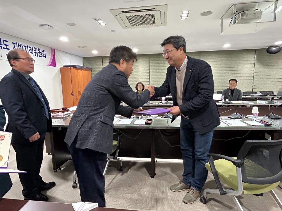 본문 시작 홈으로 학과 소식 학과소개 취업 및 진로 언론 및 보도 학과 소식 대학원 홈페이지가이드 행사사진게시판 행사사진게시판 공지사항 일반자료실 강의자료실 부동산학보 동아리 행사사진게시판 페이스북 트위터 프린트 충청북도 지방지적위원회 권기욱교수님 참여 도시경제부동산학과 3837 2023-12-28 ■ 행사 충청북도 지방지적위원회 개최 ■ 일시 2023.12.27.(수) 10:30 ■ 참여 부동산지적학과 권기욱 교수님 2023년 12월 27일 충북도청에서 지방지적위원으로 부동산지적학과 권기욱 교수님께서 참석하셨습니다. 회의에서는 단양군 영춘면 유암리 618-1번지 일원에 '지적측량부심사 청구건에 대한 사전 안전검토'를 안건으로 심의하였습니다. 작성자 : 부동산지적학과 조교 목록 이전제천제일고등학교 찾아가는 인문학 특강 - 권기욱교수님 다음 법이론실무연구 -(전세보증금 피해구조 검토와 개선방안)부동산지적학과 조재진강사 최우수논문상 취득 담당부서 : 부동산지적학과 담당자 : - 연락처 : 043-649-1784 최종수정일 : 2024-10-26 만족도조사 만족도 조사 이 페이지에서 제공하는 정보에 대하여 만족하시나요? 매우만족 만족 보통 불만족 매우불만족