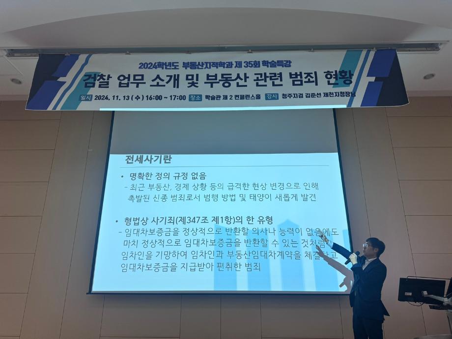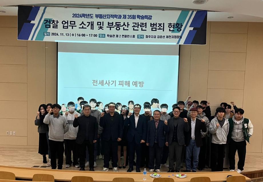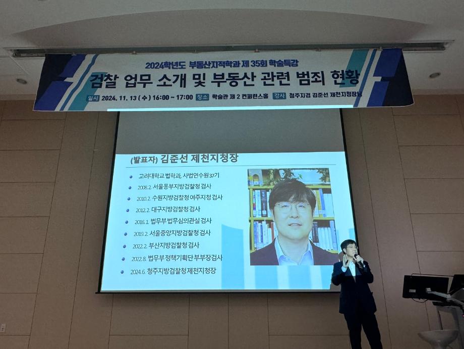 학술제 특강으로 "검찰 업무소개 및 부동산 관련 범죄현황"에 관하여 특강을 해주신 김준선 청주지방검찰청 제천지청장님께 진심으로 감사드립니다.