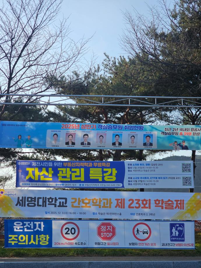 본문 시작 홈으로 학과 소식 학과소개 취업 및 진로 언론 및 보도 학과 소식 대학원 홈페이지가이드 행사사진게시판 행사사진게시판 공지사항 일반자료실 강의자료실 부동산학보 동아리 행사사진게시판 페이스북 트위터 프린트 부동산지적학과 자산관리특강 현수막 게시 부동산지적학과 710 2025-12-05 부동산지적학과에서 제천 시민들을 대상으로 진행하는 자산관리특강 안내를 위해 학교 정문·후문 및 제천 시내 주요 지역에 현수막을 게시하였습니다. 이번 특강은 지역 주민분들께 부동산 경매·재테크 관련 정보를 제공하기 위해 마련된 프로그램입니다. 많은 관심과 참여 부탁드립니다. 목록 이전2025학년도 부동산지적학과 전문가 특강 다음 2025학년도 부동산컨설팅 특강 담당부서 : 부동산지적학과 담당자 : - 연락처 : 043-649-1784 최종수정일 : 2024-10-26 만족도조사 만족도 조사 이 페이지에서 제공하는 정보에 대하여 만족하시나요? 매우만족 만족 보통 불만족 매우불만족