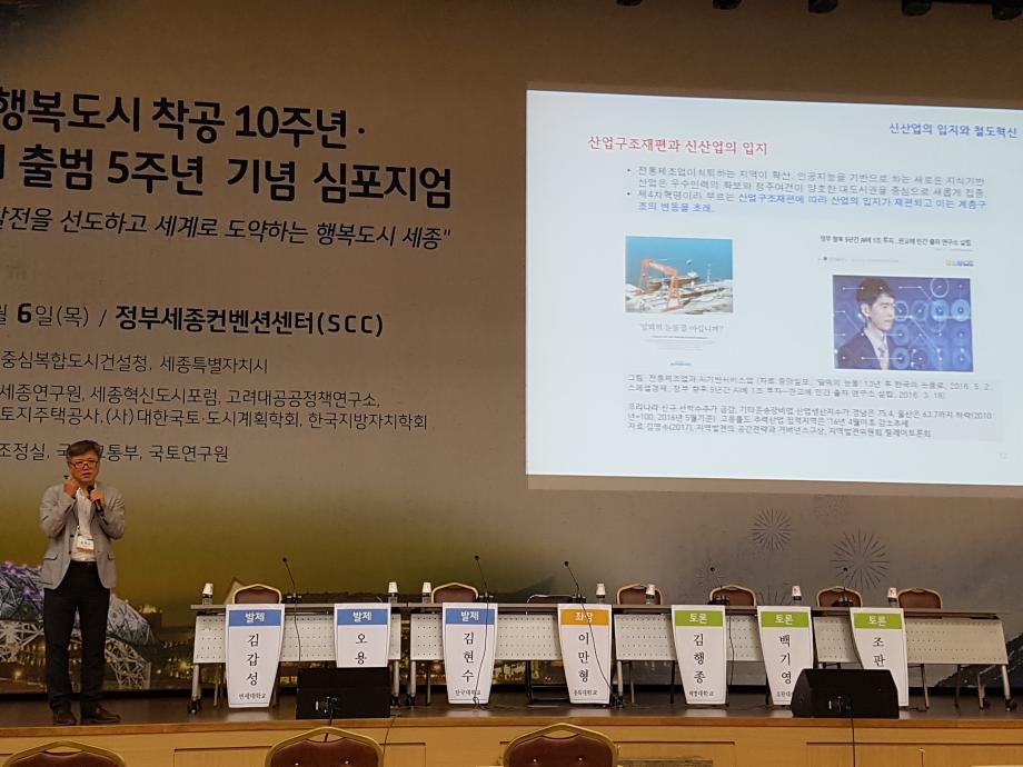 본문 시작 홈으로 학과 소식 학과소개 취업 및 진로 언론 및 보도 학과 소식 대학원 홈페이지가이드 행사사진게시판 행사사진게시판 공지사항 일반자료실 강의자료실 부동산학보 동아리 행사사진게시판 페이스북 트위터 프린트 행복도시 착공 10주년.세종시 출범 5주년 기념 심포지엄 참가 전체관리자 17688 2017-07-07 행복도시 착공 10주년.세종시 출범 5주년 기념 심포지엄 참가 일시: 2017.7.6(목) 13:00 장소: 정부세종컨벤션센터(SCC) 주최: 행정중심복합도시건설청, 세종특별자치시 참가: 세션5(국제회의장) 국가균형발전을 선도하는 지속가능한 모범도시 토론자 김행종 교수 등 500여명 목록 이전부동산학과 임원진 이전축!!! 김행종 교수님 저서 토지 및 지적재조사법론 발간 담당부서 : 부동산지적학과 담당자 : - 연락처 : 043-649-1784 최종수정일 : 2024-10-26 만족도조사 만족도 조사 이 페이지에서 제공하는 정보에 대하여 만족하시나요? 매우만족 만족 보통 불만족 매우불만족