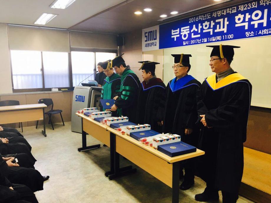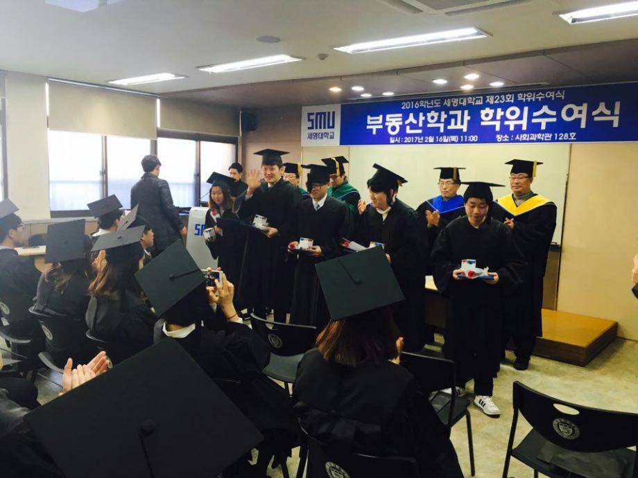 본문 시작 홈으로 학과 소식 학과소개 취업 및 진로 언론 및 보도 학과 소식 대학원 홈페이지가이드 행사사진게시판 행사사진게시판 공지사항 일반자료실 강의자료실 부동산학보 동아리 행사사진게시판 페이스북 트위터 프린트 2017년 학위수여식 전체관리자 8500 2017-04-14 2017 부동산학과 학위수여식 일시: 2017.02.16 목요일 10 :00 시 장소 : 사회과학관 128호 세명대 부동산학과 제7회 학위수여식을 마쳤습니다. 총 25명의 학생이 졸업을 하였으며, 부동산관련 직종 및 공간정보산업분야, 대학원 진학 등 을 하였습니다. 졸업생 여러분 모두 축하드립니다!! 목록 이전2017꿈설계학기 1일차 이전2017학년도 1학기 책임지도교수제 행사 개최 담당부서 : 부동산지적학과 담당자 : - 연락처 : 043-649-1784 최종수정일 : 2024-10-26 만족도조사 만족도 조사 이 페이지에서 제공하는 정보에 대하여 만족하시나요? 매우만족 만족 보통 불만족 매우불만족