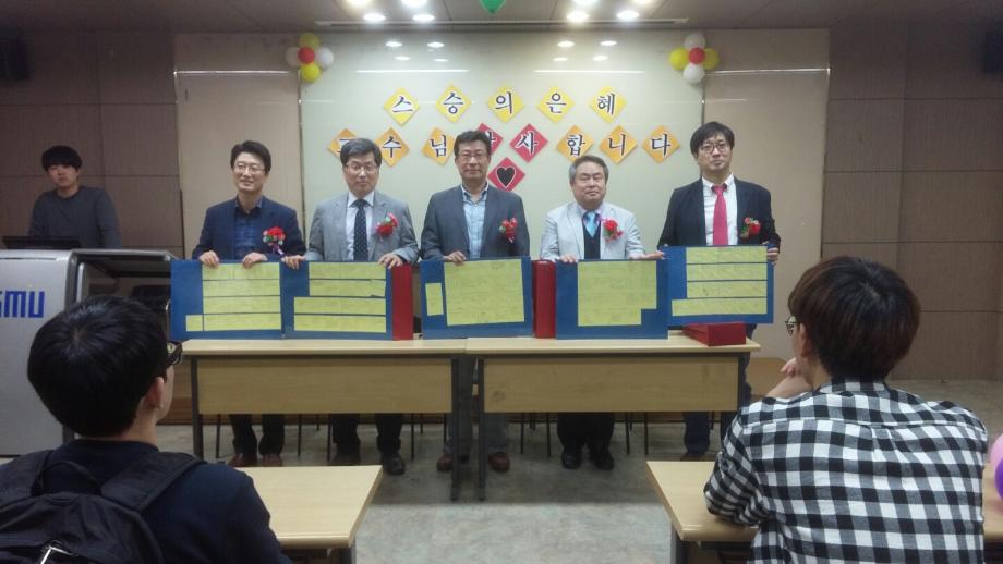 본문 시작 홈으로 학과 소식 학과소개 취업 및 진로 언론 및 보도 학과 소식 대학원 홈페이지가이드 행사사진게시판 행사사진게시판 공지사항 일반자료실 강의자료실 부동산학보 동아리 행사사진게시판 페이스북 트위터 프린트 2016년 스승의날 행사 전체관리자 8489 2016-05-17 2016년 스승의날 행사 일시 : 2016.05.11 장소 : 사회과학관 128호 16 : 00 스승의날을 기념하여 교수님과 재학생들이 한자리에 모였습니다. 모두들 교수님분들께 감사를 표시하며 재학생들은 롤링페이퍼와 작은 선물을 준비하였습니다. 각 학년과대들이 학생들을 대표하여 편지를 낭독하는 시간을가졌으며 마지막으로는 스승의은혜를 다같이 부르며 마무리하였습니다. 교수님 감사합니다~~~!! 목록 다음 2016 청룡체전 이전2016학년도 1학기 책임지도교수제 단체행사 개최 담당부서 : 부동산지적학과 담당자 : - 연락처 : 043-649-1784 최종수정일 : 2024-10-26 만족도조사 만족도 조사 이 페이지에서 제공하는 정보에 대하여 만족하시나요? 매우만족 만족 보통 불만족 매우불만족