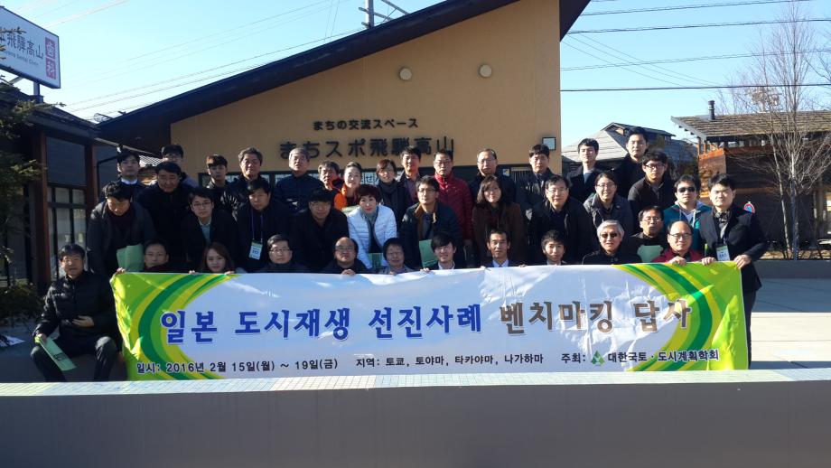 본문 시작 홈으로 학과 소식 학과소개 취업 및 진로 언론 및 보도 학과 소식 대학원 홈페이지가이드 행사사진게시판 행사사진게시판 공지사항 일반자료실 강의자료실 부동산학보 동아리 행사사진게시판 페이스북 트위터 프린트 일본 도시재생 선진사례 벤치마킹 프로그램 참가 전체관리자 8751 2016-02-21 일본 도시재생 선진사례 벤치마킹 프로그램 참가 0 일시: 2016년 2월 15일-19일 0 주관: 대한국토.도시계획학회 0 주요방문기관: 국토교통성, 민간도시개발추진구고(MINTO), 토야마 시청, 마찌즈쿠리토야마, 카나자와시민예술촌, 타가야마 시청, 나가하마 마찌즈쿠리 등 0 참가자: 세명대 김행종 교수, 한양대 구자훈 교수, 목원대 최봉문 교수 등 연구원, 시도 도시재생 공무원 등 목록 다음 2016꿈설계학기 1일차(2) 이전2016 부동산학과 학위수여식 담당부서 : 부동산지적학과 담당자 : - 연락처 : 043-649-1784 최종수정일 : 2024-10-26 만족도조사 만족도 조사 이 페이지에서 제공하는 정보에 대하여 만족하시나요? 매우만족 만족 보통 불만족 매우불만족