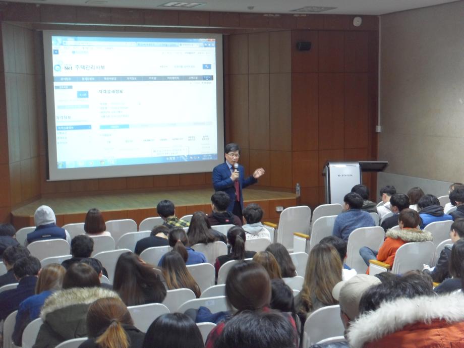 본문 시작 홈으로 학과 소식 학과소개 취업 및 진로 언론 및 보도 학과 소식 대학원 홈페이지가이드 행사사진게시판 행사사진게시판 공지사항 일반자료실 강의자료실 부동산학보 동아리 행사사진게시판 페이스북 트위터 프린트 김행종 교수 특별 취업특강 실시 전체관리자 9946 2015-11-04 강주제: 평생자격증의 취득 및 취업분야: 부동산자격증을 중심으로 일시: 2015. 11.4(수) 18:30-20:20 장소: 세명대학교 공학관 123호 대상: 전교생 선착순 150명 내용: 평생자격증 이해하기, 부동산관련 자격증 소개, 취득하기, 취업분야 등 강사: 세명대 부동산학과 김행종 교수 목록 다음 지난 여름 로키산맥 트레킹..... 다음 2015학년도 2학기 책임지도교수제 단체행사 개최 담당부서 : 부동산지적학과 담당자 : - 연락처 : 043-649-1784 최종수정일 : 2024-10-26 만족도조사 만족도 조사 이 페이지에서 제공하는 정보에 대하여 만족하시나요? 매우만족 만족 보통 불만족 매우불만족