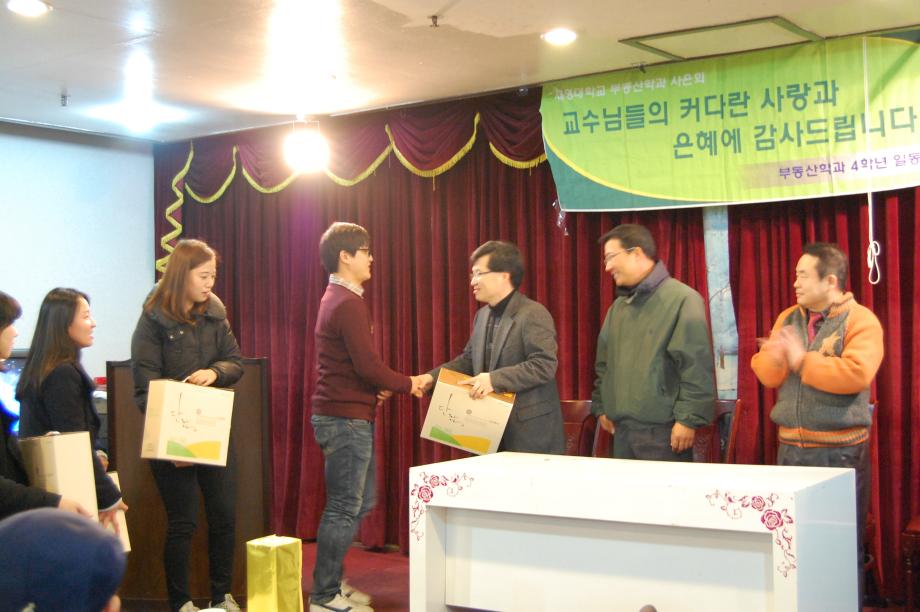 본문 시작 홈으로 학과 소식 학과소개 취업 및 진로 언론 및 보도 학과 소식 대학원 홈페이지가이드 행사사진게시판 행사사진게시판 공지사항 일반자료실 강의자료실 부동산학보 동아리 행사사진게시판 페이스북 트위터 프린트 제4회 부동산학과 사은회 개최 전체관리자 7380 2012-11-13 제4회 부동산학과 사은회 개최 일시: 2012.11. 6(화) 19:00 -21:00 장소: 성현한정식 참석자: 학과교수님, 조교선생님, 학회장, 4학년 재학생 ♥ 교수님의 가르침에 감사드립니다.♥ 목록 다음 제14회 부동산전문가특강 노병한 박사 이전제8회 국제지적심포지움 주제발표 및 총회참석 담당부서 : 부동산지적학과 담당자 : - 연락처 : 043-649-1784 최종수정일 : 2024-10-26 만족도조사 만족도 조사 이 페이지에서 제공하는 정보에 대하여 만족하시나요? 매우만족 만족 보통 불만족 매우불만족