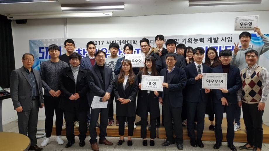 본문 시작 홈으로 학과 소식 학과소개 취업 및 진로 언론 및 보도 학과 소식 대학원 홈페이지가이드 행사사진게시판 행사사진게시판 공지사항 일반자료실 강의자료실 부동산학보 동아리 행사사진게시판 페이스북 트위터 프린트 2017학년도 사회단과대학 공모전 아카데미 부동산학과 13055 2017-11-30 제목 : 2017학년도 사회단과대학 공모전 아카데미 일시 : 2017년 10월 12일 ~ 2017년 11월 30일 장소 : 사회과학관 119호 사회단과대학 창의융합인재 공모전 아카데미에서 이동조 강사님과 함께 2달간 공모전 전략을 배웠던 부동산학과 13학번 가민석,최민기 15학번 박진호,김홍식,윤혁준 학생들이 아카데미 수료 및 최우수상을 수상하였습니다. 수상을 축하드리고 고생하셨습니다! 목록 이전2017학년 부동산학과 재학생 학습법 특강 이전2017학년 신구학회 대면식 담당부서 : 부동산지적학과 담당자 : - 연락처 : 043-649-1784 최종수정일 : 2024-10-26 만족도조사 만족도 조사 이 페이지에서 제공하는 정보에 대하여 만족하시나요? 매우만족 만족 보통 불만족 매우불만족