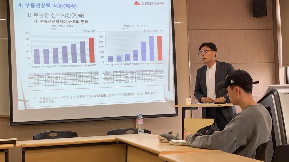 본문 시작 홈으로 학과 소식 학과소개 취업 및 진로 언론 및 보도 학과 소식 대학원 홈페이지가이드 행사사진게시판 행사사진게시판 공지사항 일반자료실 강의자료실 부동산학보 동아리 행사사진게시판 페이스북 트위터 프린트 2019년도 부동산학과 제4회 학술특강(부동산자산관리실무체험 "부동산 신탁의 개념과 이해") 부동산학과 8821 2019-07-15 ◎ 2019학년도 제4회 학술특강 시행 부동산학과에서는 “부동산자산관리실무체험” 교과목과 관련하여 아래와 같이 학술특강을 시행하였습니다. 부동산 산업 실무자의 특강을 통한 부동산산업을 간접체험하고, 관련 지식을 보다 심화 학습하였습니다. ▸ 일 시 : 2019년 05월 24일(금) 09:30~13:30 ▸ 주 제 : 부동산 신탁의 개념과 이해 ▸ 강연자 : 코람코자산신탁 사업본부장 상무 이충성 목록 이전2019학년도 제3회 학술특강(부동산자산관리실무체험 "부동산 개발/펀드투자 사례 -상업시설중심-") 다음 2019학년도 꿈설계학기 담당부서 : 부동산지적학과 담당자 : - 연락처 : 043-649-1784 최종수정일 : 2024-10-26 만족도조사 만족도 조사 이 페이지에서 제공하는 정보에 대하여 만족하시나요? 매우만족 만족 보통 불만족 매우불만족