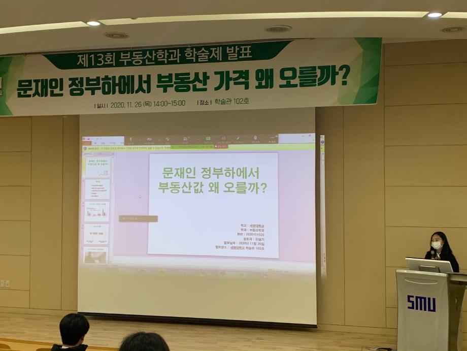 본문 시작 홈으로 학과 소식 학과소개 취업 및 진로 언론 및 보도 학과 소식 대학원 홈페이지가이드 행사사진게시판 행사사진게시판 공지사항 일반자료실 강의자료실 부동산학보 동아리 행사사진게시판 페이스북 트위터 프린트 재학생 학술발표(13회 부동산학과 학술제) 부동산학과 4943 2020-12-04 ■ 장소 학술관102호 ■ 일시 2020. 11.26(목) 17:00 ~ 18:00 ■ 학술발표 주제 문재인 정부하에서 부동산 가격 왜 오를까? ■ 발표자 유슬기, 성민 윤상필, 권영주 신현호, 오진우 김남현 목록 이전제31회 부동산학과 학술특강 개최 다음 재학생 학술발표 시상식 담당부서 : 부동산지적학과 담당자 : - 연락처 : 043-649-1784 최종수정일 : 2024-10-26 만족도조사 만족도 조사 이 페이지에서 제공하는 정보에 대하여 만족하시나요? 매우만족 만족 보통 불만족 매우불만족