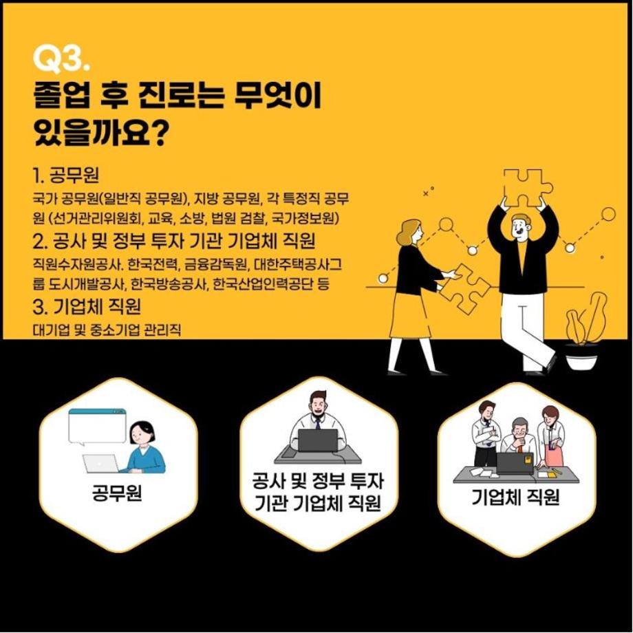 정부기관에서 근무할 공무원과 공공기관의 창의력 인력 양성을 주된 목적으로 하는 학과입니다❗️