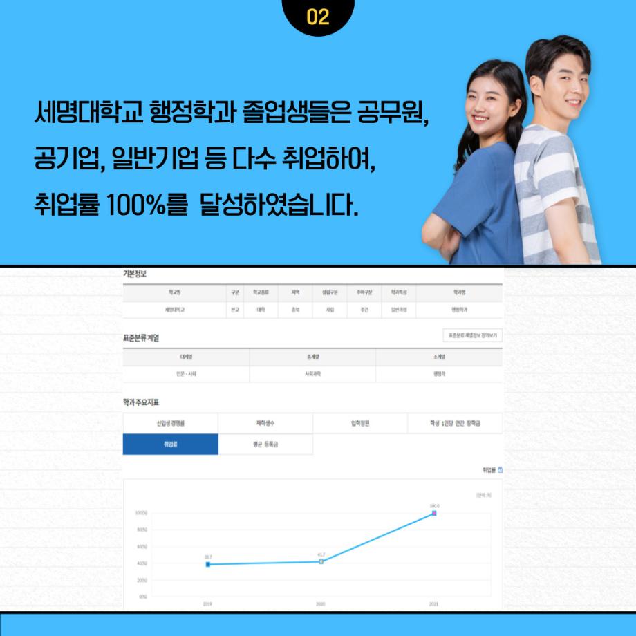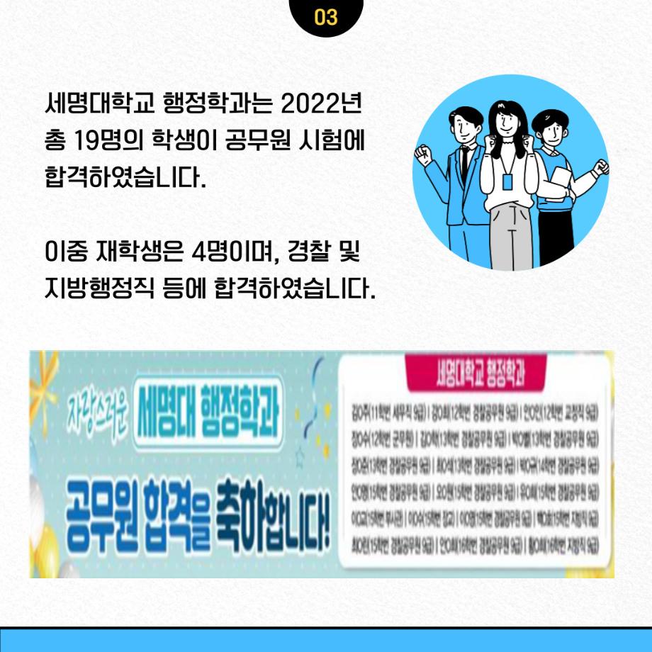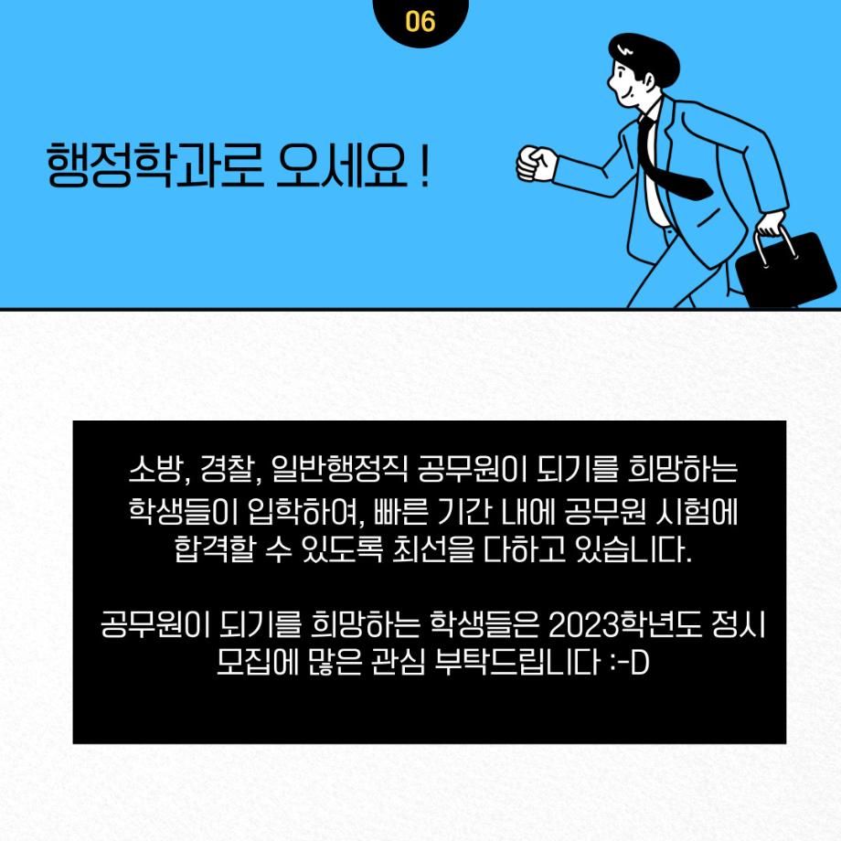 본문 시작 홈으로 학과소개 학과소개 교수소개 학과과정 커뮤니티 학과SNS 홈페이지가이드 입학안내 학과개요 학과장 인사말 학과연혁 교육목표 졸업 후 진로와 취업현황 학과행사 카드뉴스 입학안내 행정학 용어사전 입학안내 페이스북 트위터 프린트 📝2023학년도 행정학과 정시 모집📝 행정학과 2472 2022-12-30 안녕하세요! 2022년 12월 29일부터 2023년 1월 2일까지 세명대학교 행정학과 정시모집 원서접수 기간입니다. 공무원이 되기를 희망하는 학생들을 환영합니다🤗많은 관심과 지원 바랍니다~‼ 목록 이전[이벤트] 2023학년도 정시모집 지원학생(희망자)들을 위한 sns 이벤트! 만족도조사 만족도 조사 이 페이지에서 제공하는 정보에 대하여 만족하시나요? 매우만족 만족 보통 불만족 매우불만족