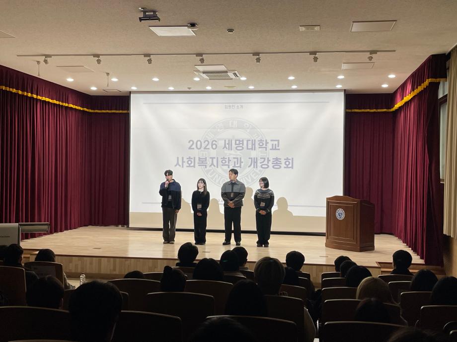 본문 시작 홈으로 커뮤니티 학과소개 교수소개 교육과정 현장실습 및 취업정보 커뮤니티 홈페이지가이드 포토갤러리 학과공지 학사일정 학생회 동아리 학생 소통 광장 포토갤러리 전공자료실 서식자료실 포토갤러리 페이스북 트위터 프린트 [사회복지학과] 2026학년도 개강총회 사회복지학과 65 2026-03-30 일시: 2026. 3. 18. 17:00 장소: 세명대학교 민송도서관 시청각실 지난 3월 18일, 2026학년도 새학기를 맞이하여 사회복지학과 개강총회가 진행되었습니다. 목록 이전[사회과학대학] 제 9회 사회과학대학 토론대회 수상 다음 [사회복지학과] 2026학년도 신입생 환영회 만족도조사 만족도 조사 이 페이지에서 제공하는 정보에 대하여 만족하시나요? 매우만족 만족 보통 불만족 매우불만족